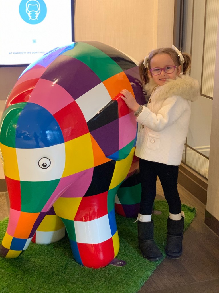 I asked Ita what her favourite part of the stay was and she said ‘’swimming’’. Had we been able to stay longer, I would have booked a pool slot for the Sunday too. Instead, we had just enough time to walk around and see a few of the many animals placed around the hotel. I can honestly say though, Ita loved this break and it was largely down to Elmer and the thoughtful Elmer gifts.
