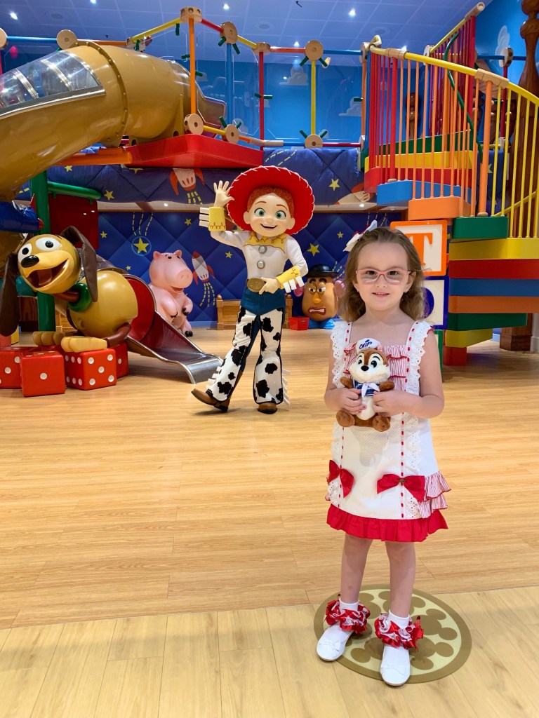 Ita met Stitch in the kids club and that was a real highlight for her! During the open house at the kids club we also got to meet Woody and Jessie – this was really good and I would highly recommend popping in during the opening house (the morning on the 2nd day) to take a look around and grab a picture!