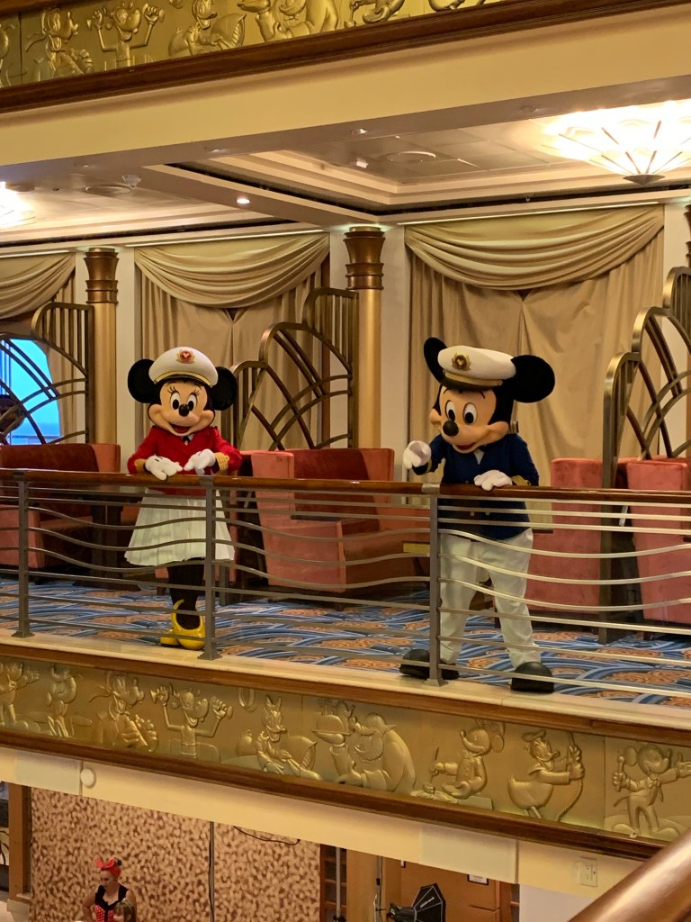 Once you are onboard, there is a small welcome and dance by Mickey and Minnie and then you are escorted to learn about the health and safety.