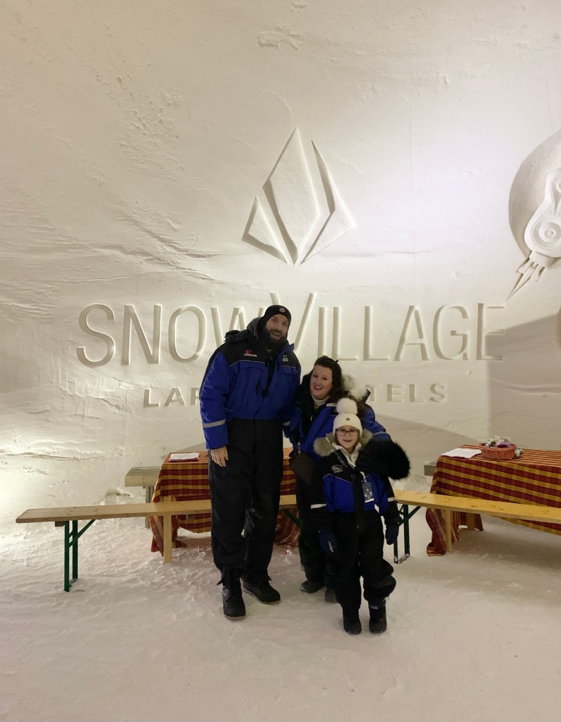 We then headed to our coach and drove about 25 minutes to Kittilas Snow Village. There we had free reign of what we wanted to do and were encouraged to follow our own itinerary. We enjoyed reindeer rides in huge sleighs and Ita especially loved the husky rides! We had hot chocolate in the hotel made entirely from ice and ate delicious mash and meatballs (think ikea style!). A highlight was of course taking a snow mobile to Santa’s cabin deep in the woods.