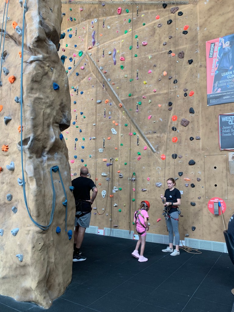 We started the week by taking a ‘wall climbing’ class with Toni at Westminster Lodge in St Albans. This was a class that we tried last year and it was something that Ita was eager to do again. Everyone Active follows NICAS (National Indoor Climbing Award Scheme) sessions. NICAS is a structured programme aimed at progressing beginner indoor climbers through a series of levels. NICAS Level 1 begins with teaching the climber how to put on a harness, tie their climbing knot and belay safely. As the climber progresses through the NICAS levels they will learn a range of climbing movement techniques, set their own goals and develop autonomy within the climbing wall. The session lasted an hour and took us through all health and safety aspects before embarking on climbing! We were so impressed by how much further Ita could climb. It became a bit competitive between a certain father and daughter… but of course, daddy backed down and Ita was victorious!